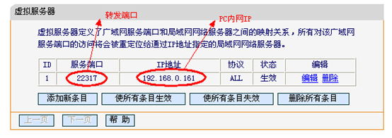 當前PC使用靜態(tài)IP:192.168.0.161,轉發(fā)端口22317