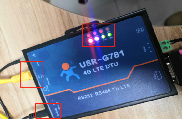 5. 上電后,指示燈情況:PWR常亮,WORK燈閃亮,NET燈2G紅色、3G藍(lán)色、4G紫色,SIM燈亮(插入有效SIM亮,未插入或SIM卡無(wú)效不亮)