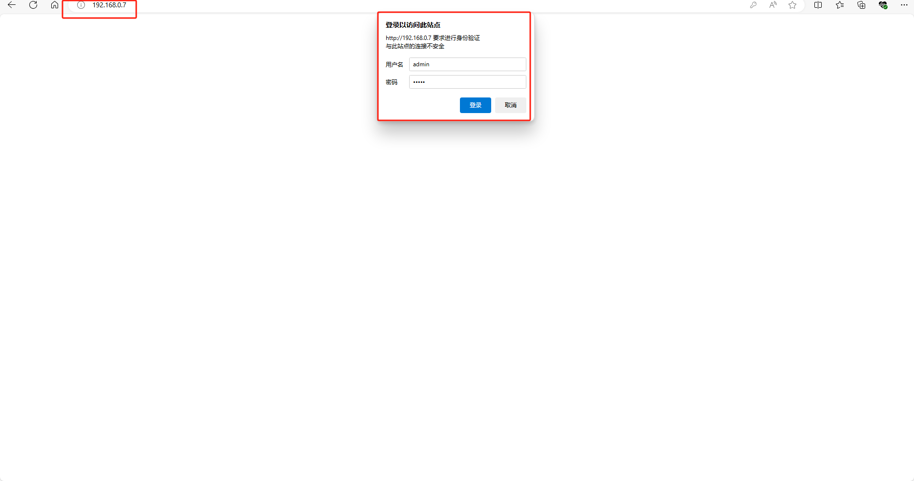 打開瀏覽器,輸入192.168.0.7,賬號(hào)admin,密碼admin,進(jìn)入設(shè)備內(nèi)置網(wǎng)頁(yè)