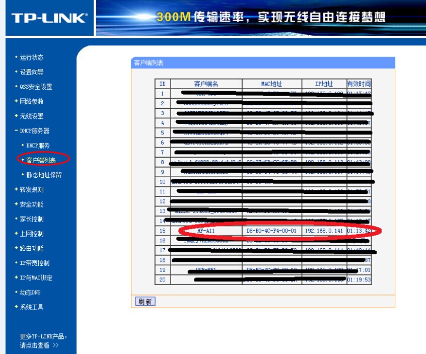 完成之后,從無(wú)線(xiàn)路由器的DHCP列表里面能找到模塊已經(jīng)主動(dòng)連入路由器創(chuàng)建的網(wǎng)絡(luò)。