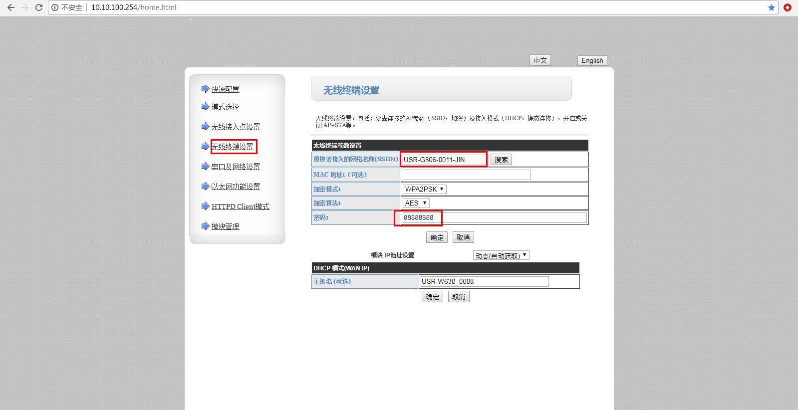 舉例:我用USR-W630連接的路由器wifi名稱是USR-G806-0011-JIN,密碼是88888888。
