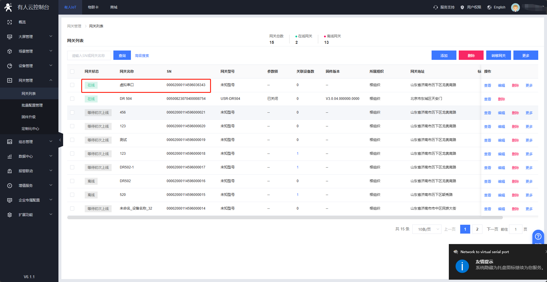 3、添加虛擬串口。在網(wǎng)關(guān)管理--網(wǎng)關(guān)列表界面添加虛擬串口com8.微信截圖_20240611134618-20240611134728.png)