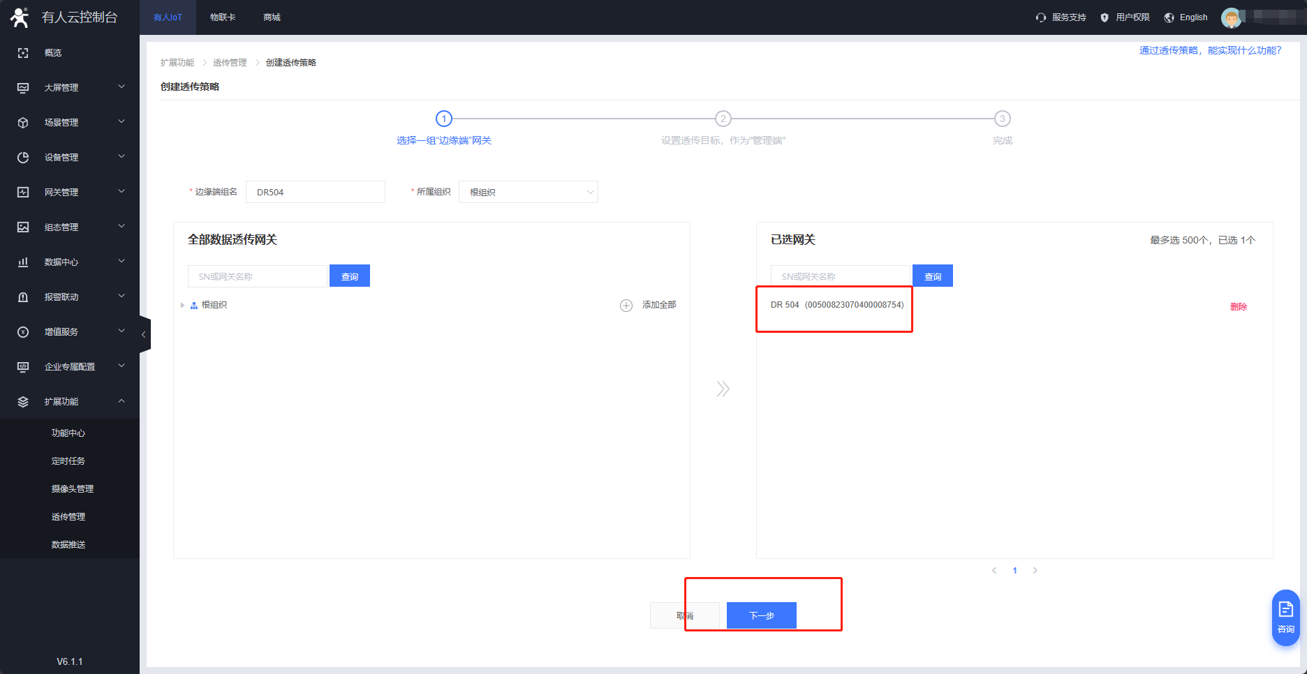 2、選擇邊緣端設(shè)備(DR504)點(diǎn)擊下一步