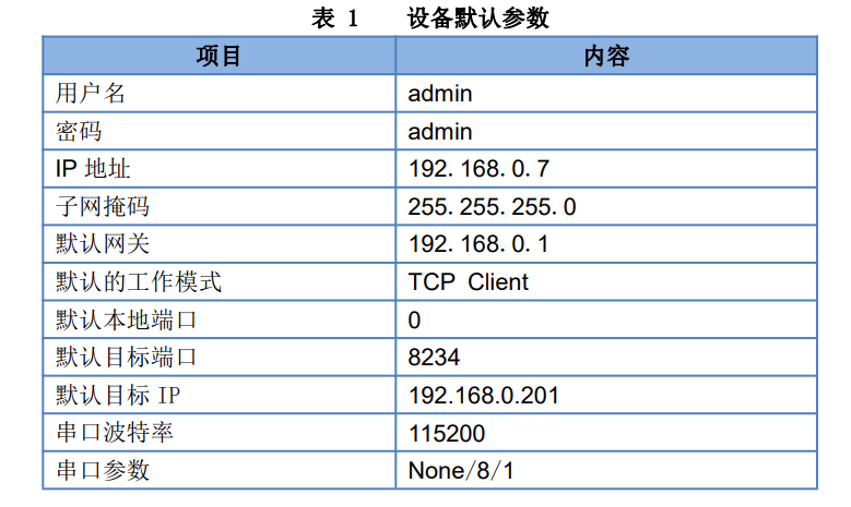 二.設備默認參數(shù)