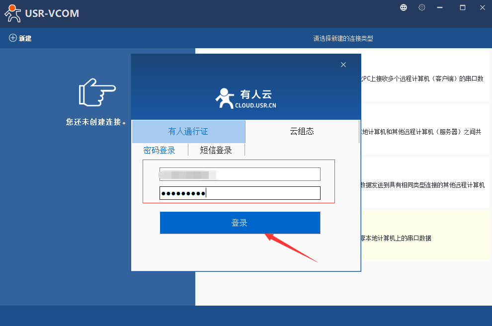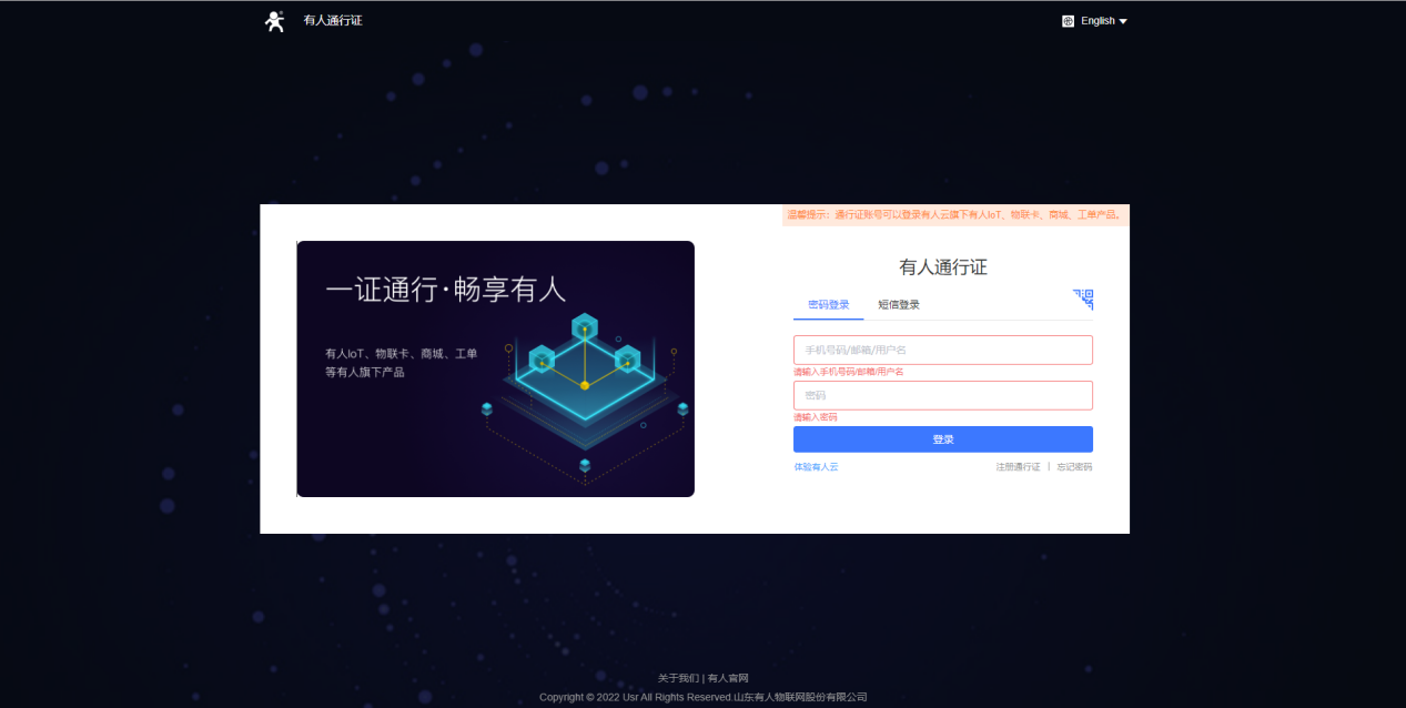 1、登錄有人云(若沒有有人云賬號(hào),先注冊(cè)),輸出賬號(hào)密碼登錄。https://account.usr.cn/#/login_cps?type=mp_scada