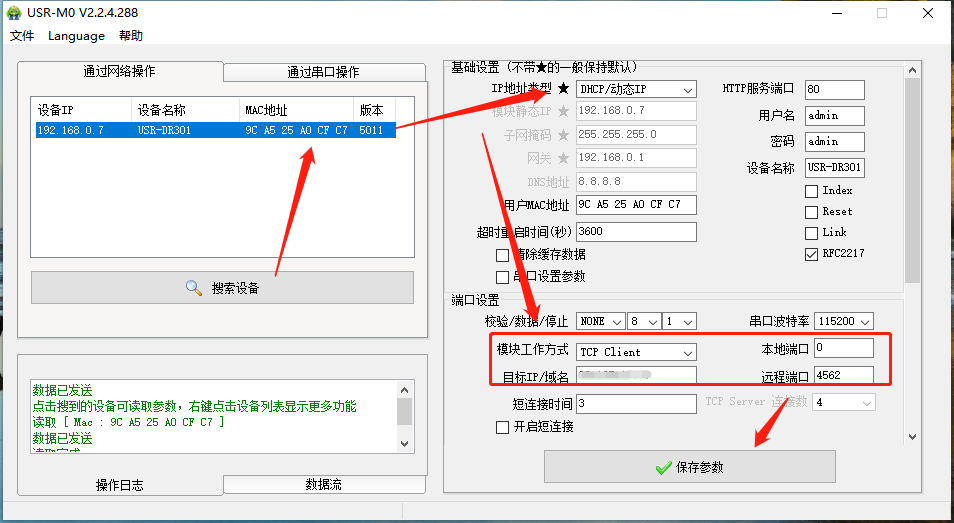 D. 工作方式選擇TCP Client,目標ip:自己的公網(wǎng)IP服務器,遠程端口號:4562(在服務器端自己設置的端口);