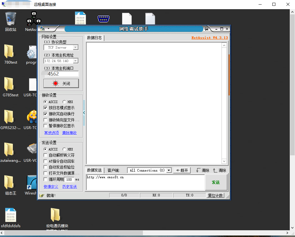 1、端打開一個(gè)網(wǎng)絡(luò)調(diào)試助手,設(shè)置成TCP server可隨意設(shè)置,只要不是特殊端口或重復(fù)端口就可以(以4562為例),點(diǎn)擊開始監(jiān)聽。