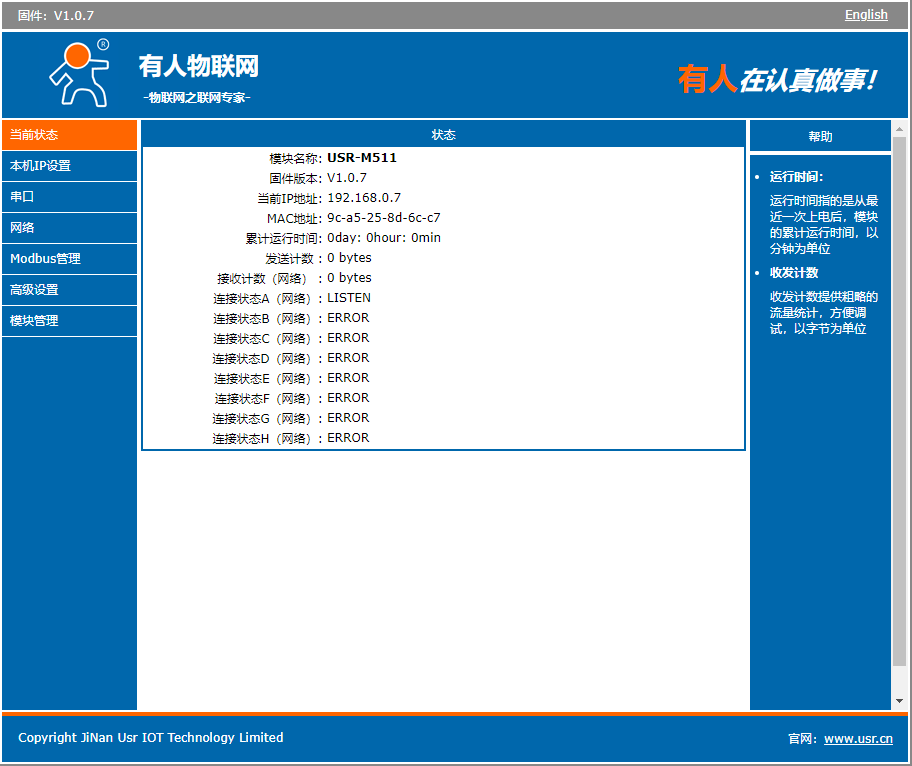 4、打開電腦瀏覽器,地址欄輸入192.168.0.7,進入511內置網(wǎng)頁。