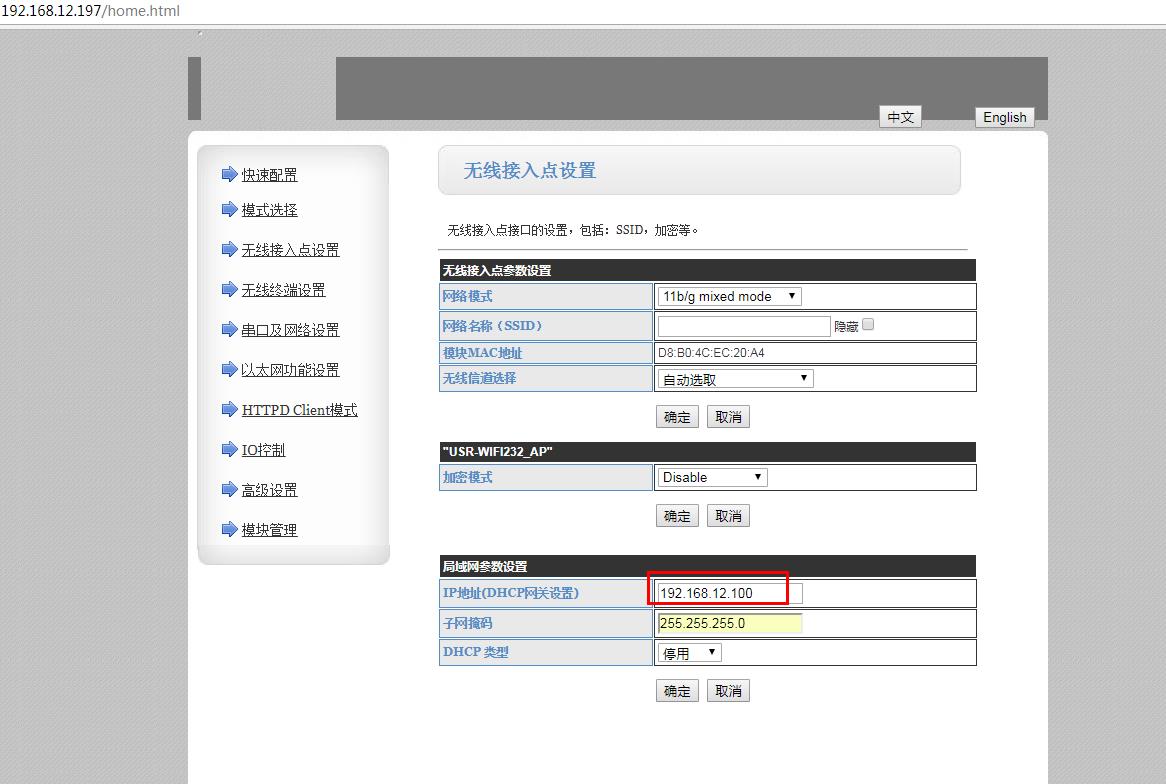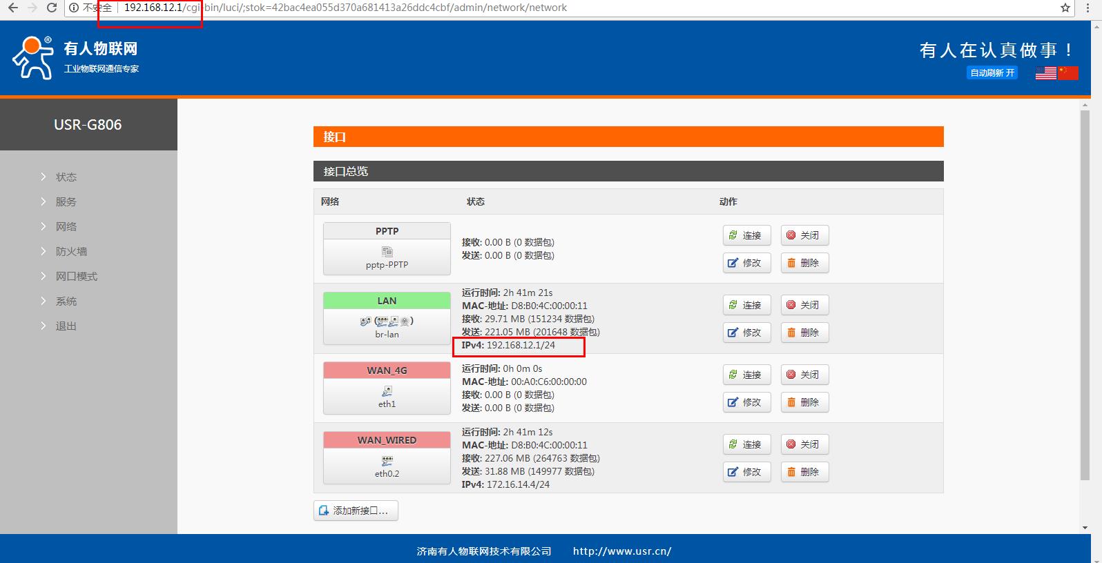 電腦連接路由器的wifi,電腦瀏覽器使用設(shè)置的Ip 192.168.12.100,登錄B2模塊的內(nèi)置網(wǎng)頁(yè)。