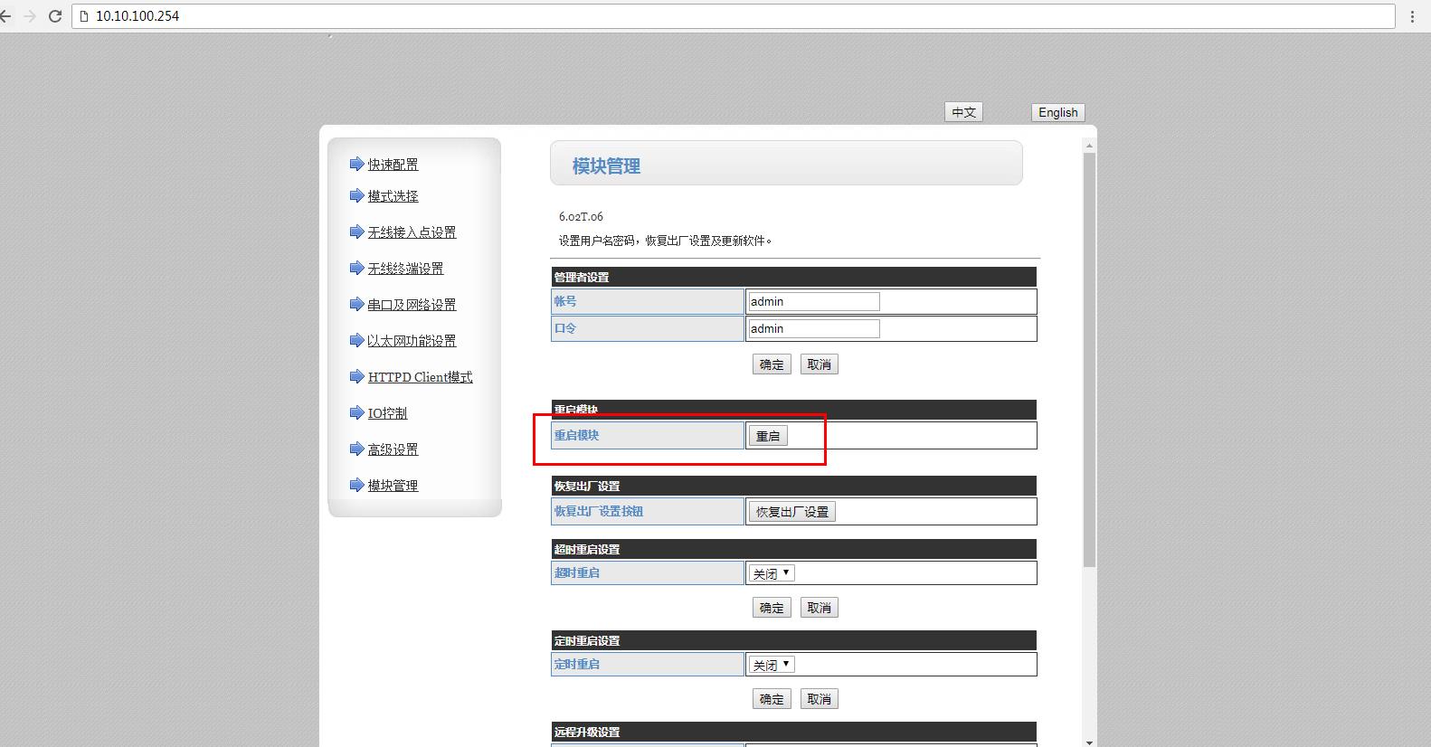USR-WIFI232-B2默認(rèn)Ip是10.10.100.254,用這個(gè)Ip,在瀏覽器輸入,進(jìn)入U(xiǎn)SR-WIFI232-B2的內(nèi)置網(wǎng)頁(yè),可以對(duì)B2模塊進(jìn)行參數(shù)查看和參數(shù)配置。登錄用戶名和密碼都是admin。