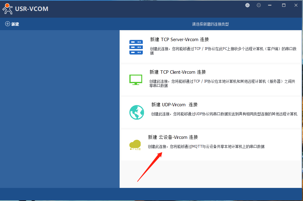 打開虛擬串口軟件,點(diǎn)擊新建云設(shè)備-Vircom連接。在跳出的登錄頁(yè)面登錄自己的有人云賬號(hào)。