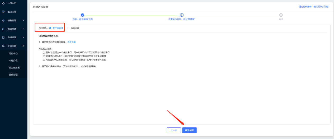 21、透?jìng)髂繕?biāo)選擇客戶端軟件,點(diǎn)擊確認(rèn)創(chuàng)建。