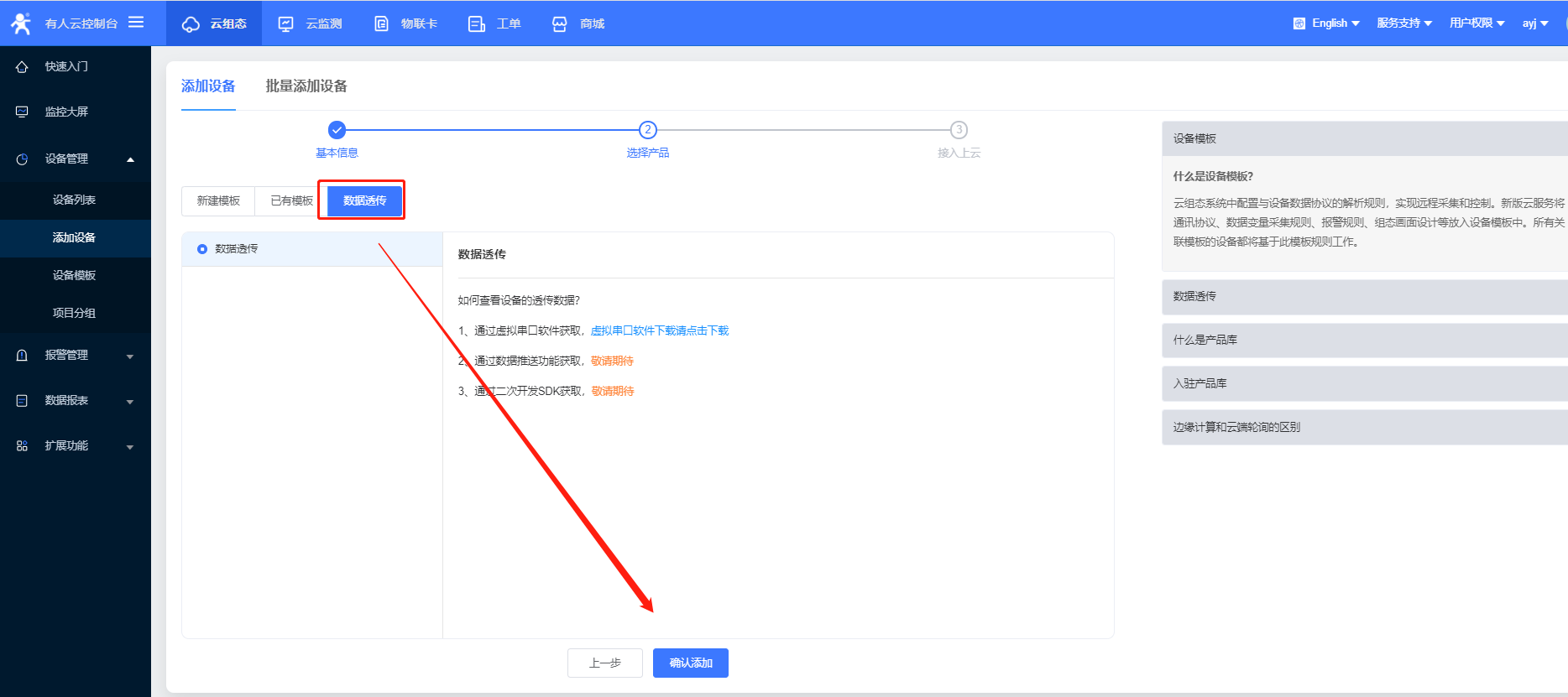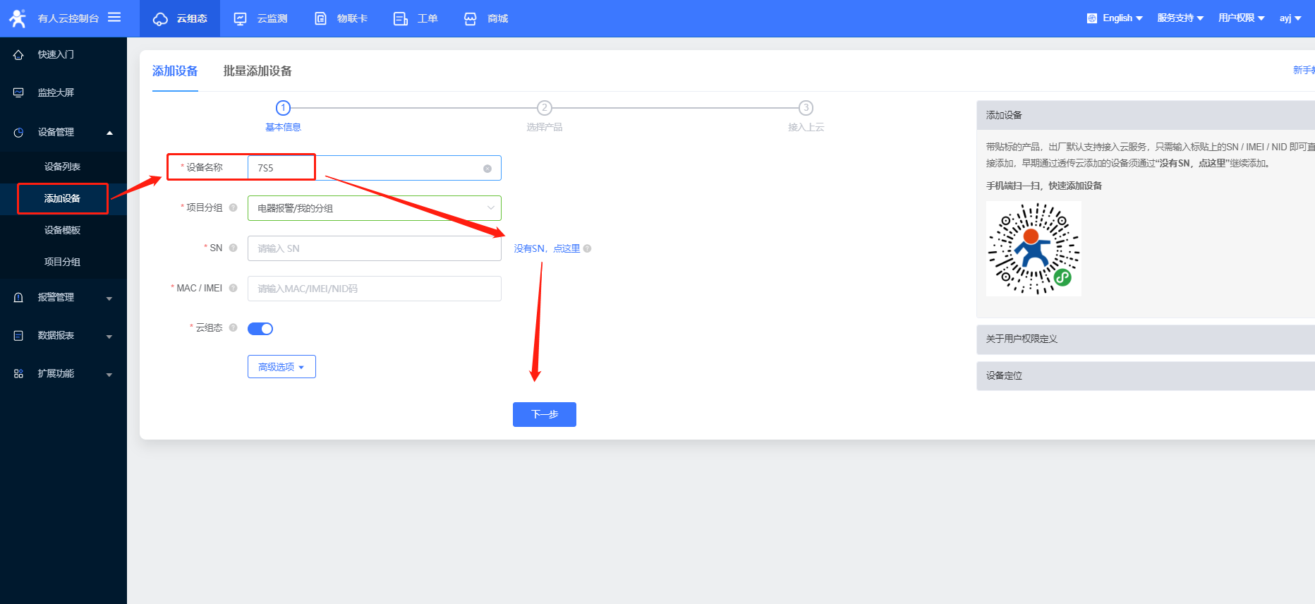 注意設(shè)備編號和密碼是對應(yīng)云端的SN和通信密碼