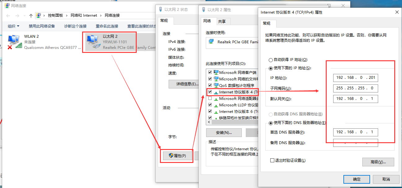 3、給電腦設(shè)置靜態(tài)IP,設(shè)置成301默認目標(biāo)Ip:192.168.0.201。