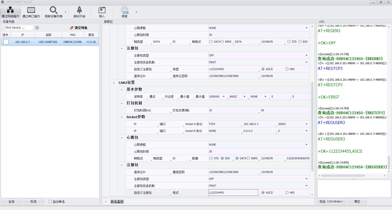 用CANET200設(shè)置軟件網(wǎng)絡(luò)搜索,讀取參數(shù)。