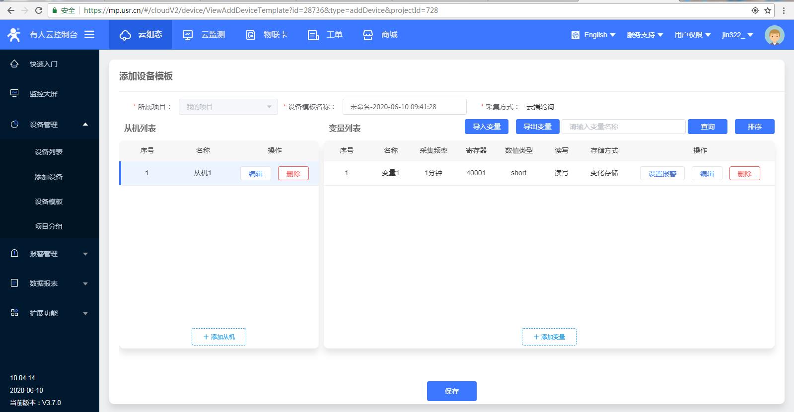 2、添加USR-M511設(shè)備,設(shè)置通訊密碼,舉例00001234