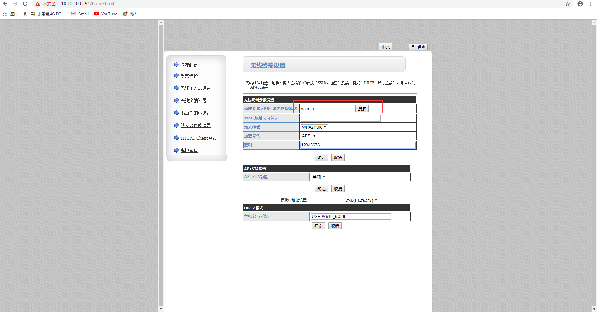 3.選擇模塊工作模式Station模式(STA),點(diǎn)擊確定