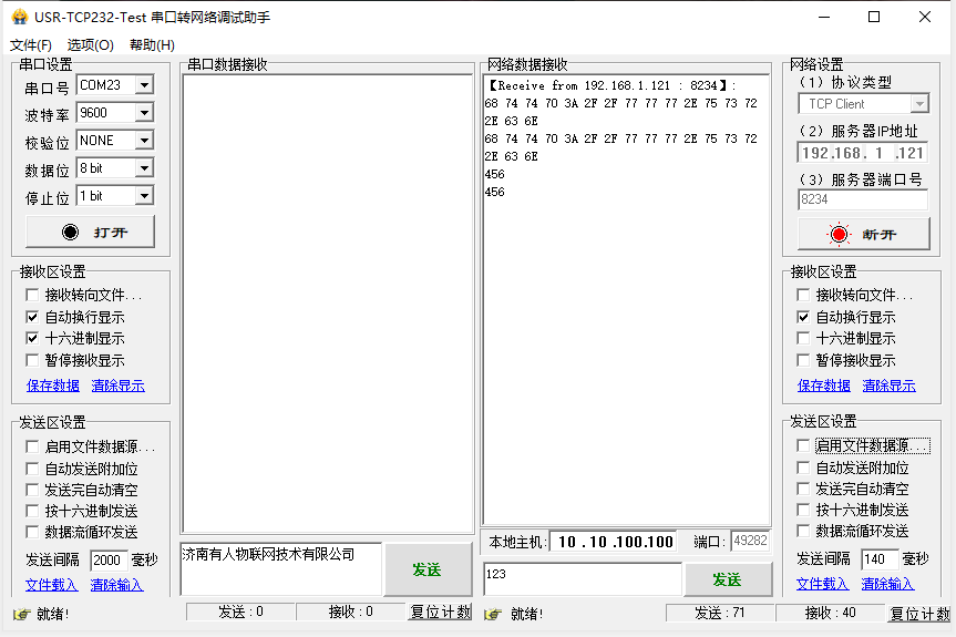 USR-W610基本通訊測(cè)試http://www.lifj.com.cn/Faq/338.html