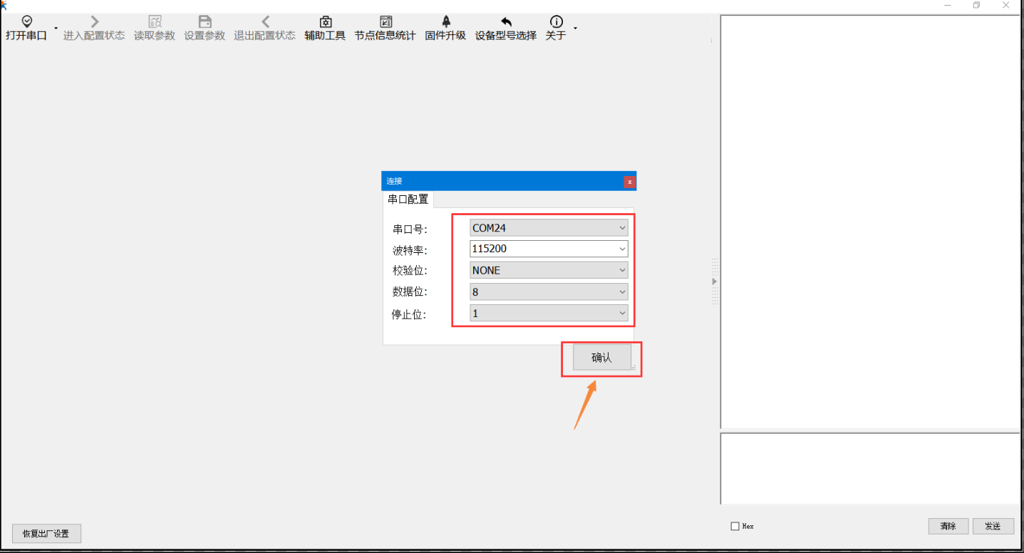 實際應用時,串口設置內的波特率、校驗位、數據位、停止需要配置為您206串口要要接的串口設備串口參數,不然數據會是亂碼,本次案例為默認參數未修改。 使用485串口線時流控配置為“485”,流控為485時也是可以使用232串口線通信的。