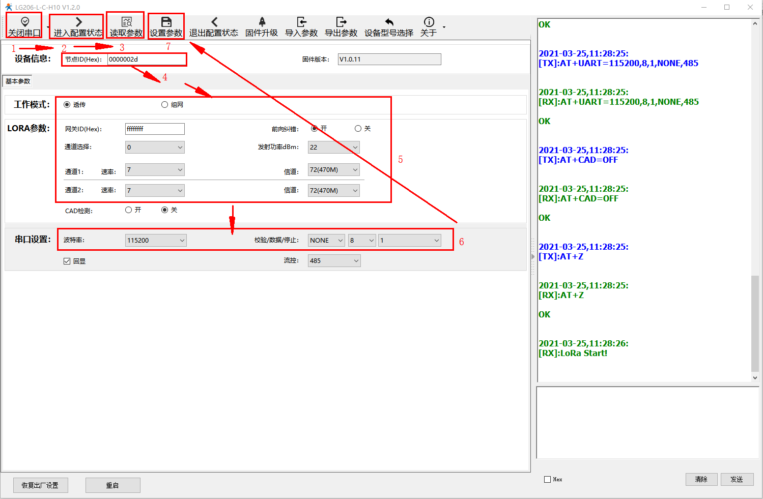 模式配置:“透明傳輸”,節(jié)點ID:“ALL”