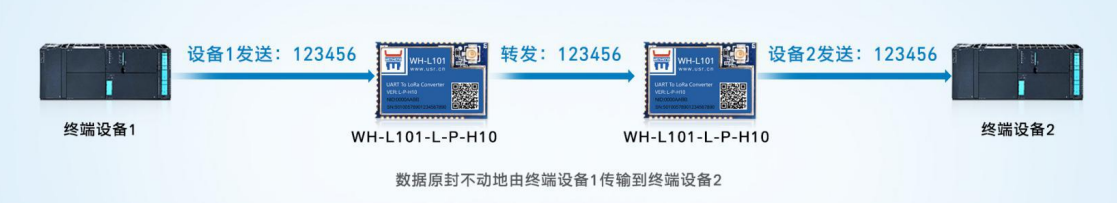 啟動兩個USR-TCp232-Test(模擬串口設(shè)備1,2)分別連接LoRa數(shù)傳終端A、B的串口,使用串口設(shè)備1發(fā)送數(shù)據(jù)串口設(shè)備2可接收數(shù)據(jù)(反之亦然),通信效果如下圖所示: