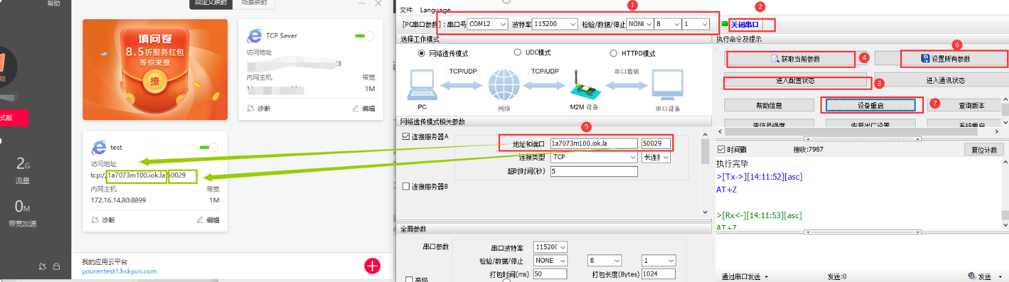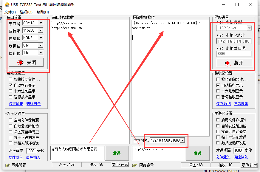 10.使用有人Test調(diào)試助手軟件測試GPRS DTU串口到網(wǎng)絡(luò)數(shù)據(jù)收發(fā)情況