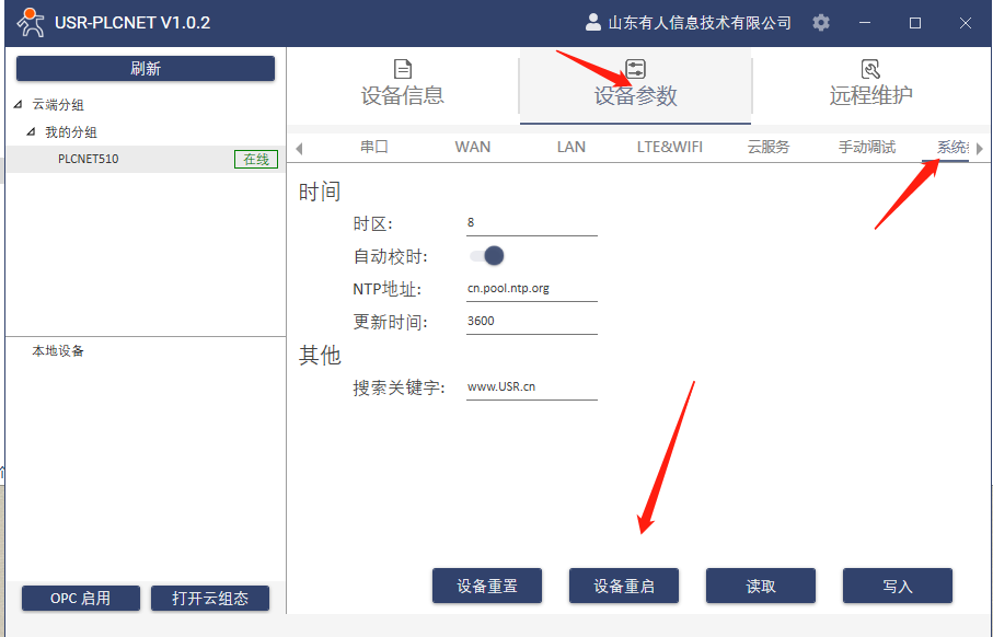9.選中在線設(shè)備,設(shè)備參數(shù)》LAN,修改LAN口IP和PLC的網(wǎng)口IP在同一網(wǎng)段,點(diǎn)擊寫入