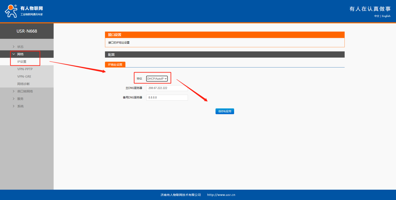 5、網(wǎng)絡(luò)IP設(shè)置中,設(shè)置為DHCP動(dòng)態(tài)IP,然后系統(tǒng)頁(yè)面重啟設(shè)備,參數(shù)需要重啟生效。