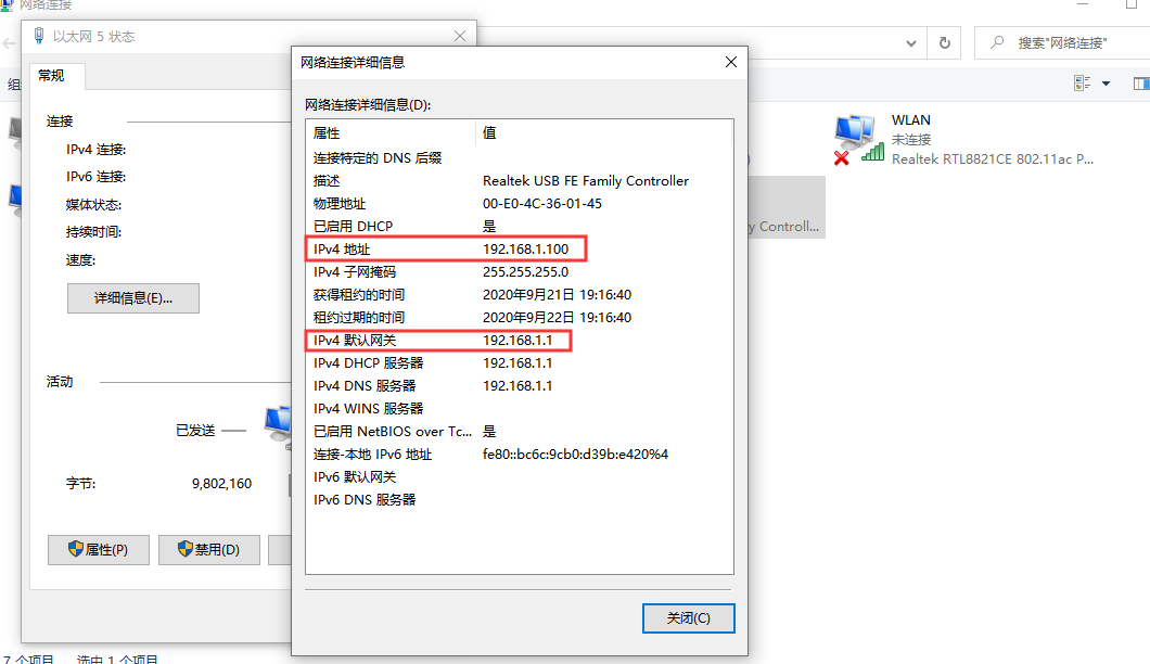 2.雙擊該網(wǎng)卡,點擊詳細信息,可以查看電腦獲取到的IP以及網(wǎng)關(guān)
