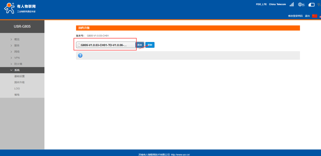 6.點擊瀏覽選擇電腦中要升級的固件文件(如需升級,請在客戶支持中心提交工單,備注當前固件版本,技術(shù)支持會將固件以郵件的形式發(fā)送),選擇無誤后點擊更新