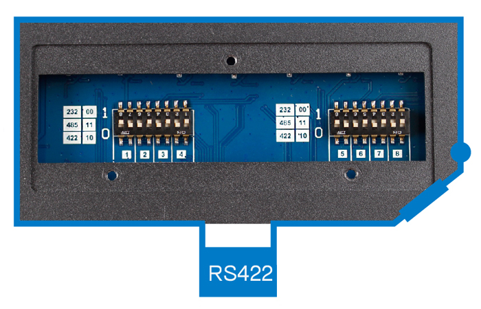 為了減小體積,方便機柜中擺放,節(jié)省設(shè)備接口空間,做成RJ45封裝形式,使用時通過DB9-M 轉(zhuǎn) RJ45轉(zhuǎn)換器即可實現(xiàn)輕松聯(lián)網(wǎng)。由于RS232模式使用相對較多,因此出廠默認為RS232模式。如果使用RS485模式或RS422模式可調(diào)整對應(yīng)的撥碼開關(guān)。