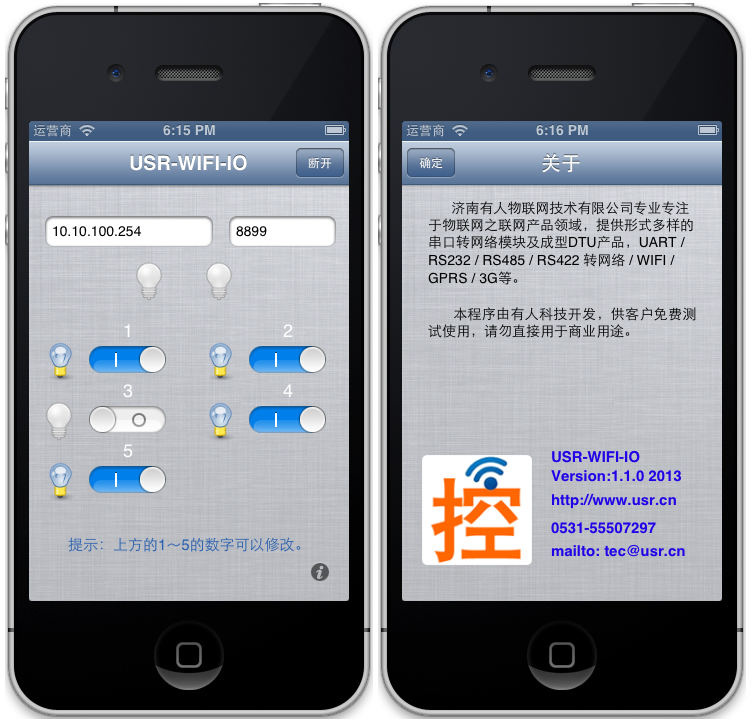 IOS程序在蘋果APP商場上線標志著我公司可以在PC、android、IOS領域實現(xiàn)對USR-WIFI-IO的全方位支持,滿足客戶的全方面的個性化需求。