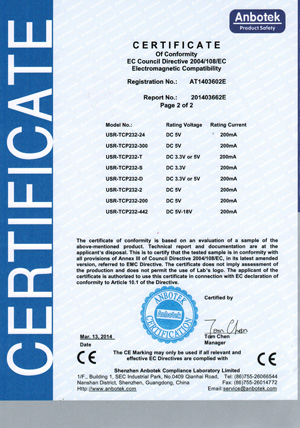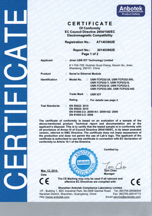 2014年3月28日,在公司全體員工共同努力下,在做了大量的技術(shù)和管理工作后,我公司USR-T24系列核心成功獲得CE認(rèn)證證書(shū), CE證書(shū)的獲得標(biāo)志著有人科技取得了順利進(jìn)入歐盟及歐盟自由貿(mào)易協(xié)會(huì)國(guó)家市場(chǎng)的通行證,為公司海外市場(chǎng)的開(kāi)拓奠定了基礎(chǔ);同時(shí)也標(biāo)志我公司的產(chǎn)品又上了一個(gè)新臺(tái)階!