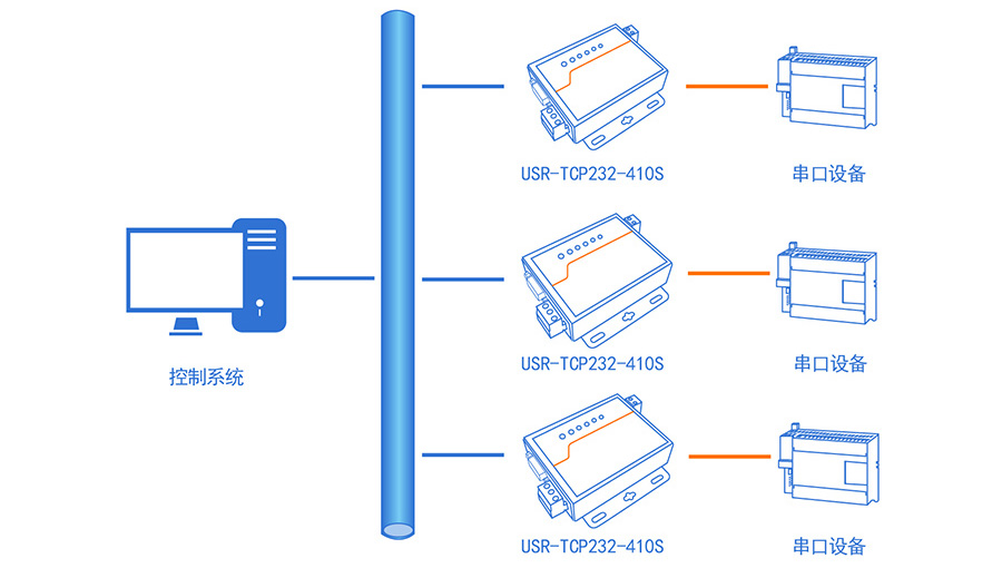 串口服務(wù)器的使用通常是串口端RS232/485連接串口設(shè)備,另一端與網(wǎng)口相連,RS232和RS485串口同時(shí)獨(dú)立工作,互不影響