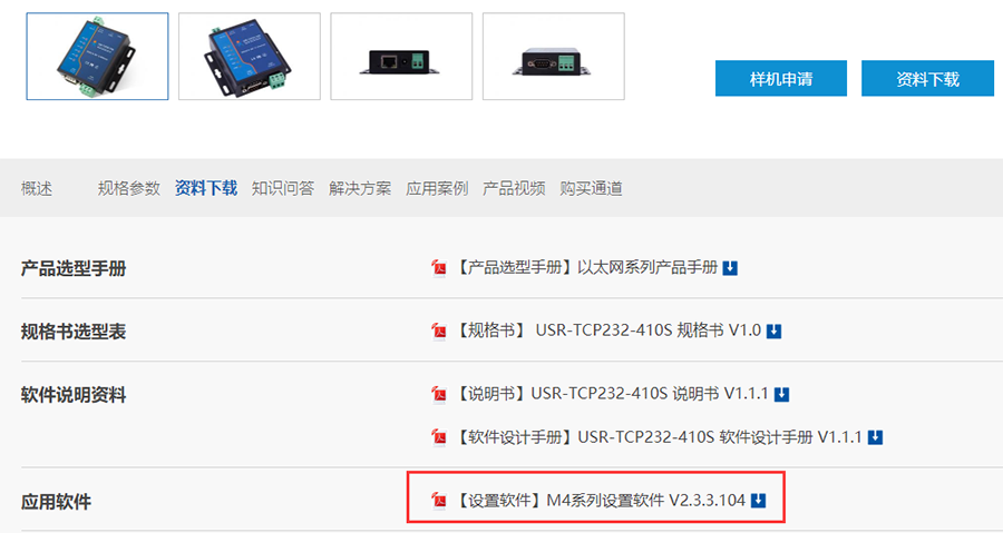 答:用上述同樣的方式登錄到有人官網(wǎng),在對應(yīng)的產(chǎn)品詳情頁中,“資料下載”的標(biāo)簽下載對應(yīng)的“設(shè)置軟件”,例如下圖410s的設(shè)置軟件