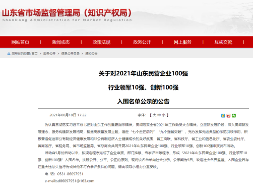 為認真貫徹落實習近平總書記對山東工作的重要指示精神,貫徹落實全省2021年工作動員大會精神,立足新發(fā)展階段,貫徹新發(fā)展理念,服務構建新發(fā)展格局,聚焦高質量發(fā)展主題,省工商聯(lián)、省科技廳、省工業(yè)和信息化廳等有關部門共同開展了2021年山東民營企業(yè)100強、行業(yè)領軍10強、創(chuàng)新100強申報發(fā)布活動。