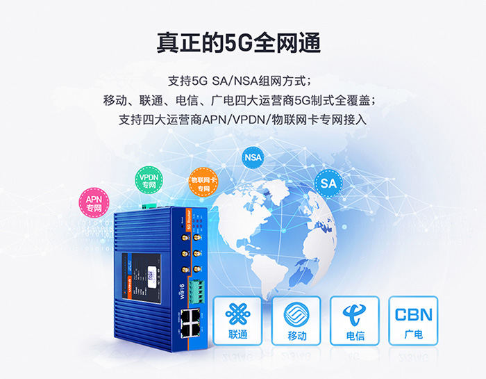 工業(yè)路由器是一種通過蜂窩無線網(wǎng)絡(luò)為用戶提供無線的數(shù)據(jù)傳輸功能。通常工業(yè)路由器支持移動、聯(lián)通、電信三大運(yùn)營商,而有人5G工業(yè)路由器在此基礎(chǔ)上,還支持廣電運(yùn)營商。是四大運(yùn)營商的全網(wǎng)通工業(yè)路由器。