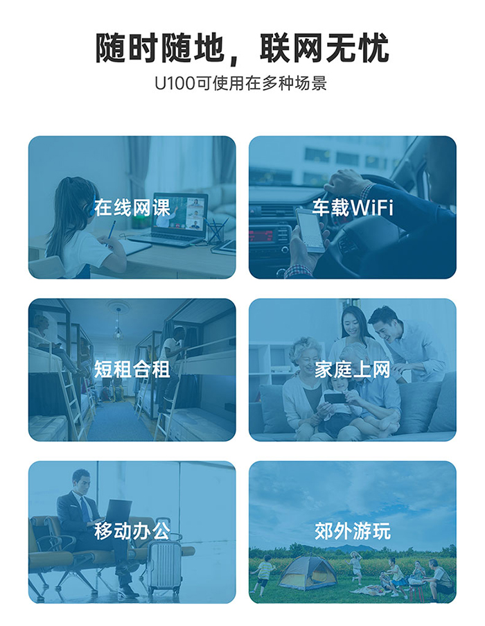 U100內(nèi)置防火墻,支持WPA/WPAS的WIFI加密方式,安全等級(jí)高,有效防止蹭網(wǎng)。支持多場景使用——開車游玩、野餐、露營,擔(dān)心自己流量不夠用?短租房,扯網(wǎng)線辦寬帶,麻煩又不劃算?室友們都在上網(wǎng),網(wǎng)速不給力?外出辦公、產(chǎn)品演示、臨時(shí)會(huì)議,找不到WIFI?一臺(tái)小小的U100通通解決!