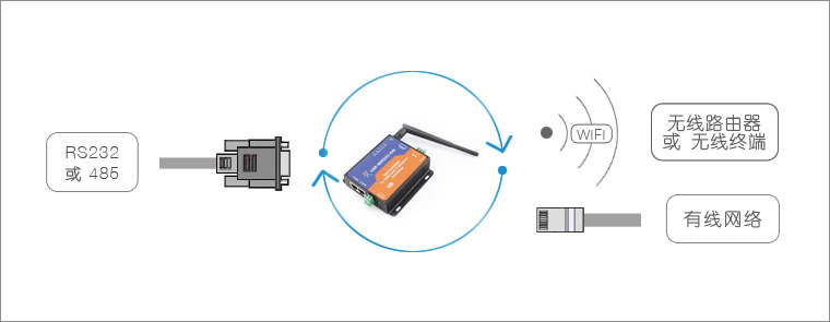一句話解釋:實(shí)現(xiàn)串口(RS232/485)與WIFI的雙向透明傳輸?shù)脑O(shè)備。