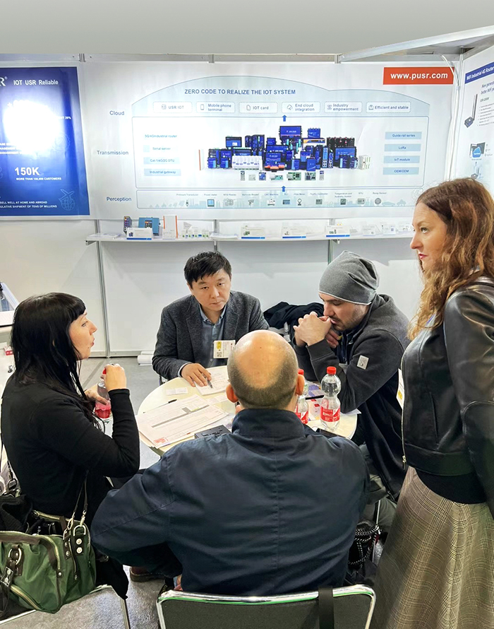 本次展出產(chǎn)品主要包括4G/5G工業(yè)路由器、4G/Cat.1 DTU、串口服務(wù)器、工業(yè)交換機(jī)、無線通信模組等產(chǎn)品,其中5G工業(yè)路由G817c、5G CPE U200、邊緣計算網(wǎng)關(guān)M100等有人明星產(chǎn)品頗受各國參展者關(guān)注,紛紛駐足參觀探討。