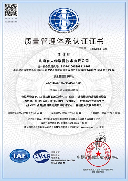近日,經(jīng)過中標(biāo)研國聯(lián)(北京)認(rèn)證中心的嚴(yán)格審核,濟(jì)南有人物聯(lián)網(wǎng)技術(shù)有限公司順利通過ISO“三體系”——ISO9001質(zhì)量管理體系、ISO24001環(huán)境管理體系、ISO45001職業(yè)健康安全管理體系的認(rèn)證。
