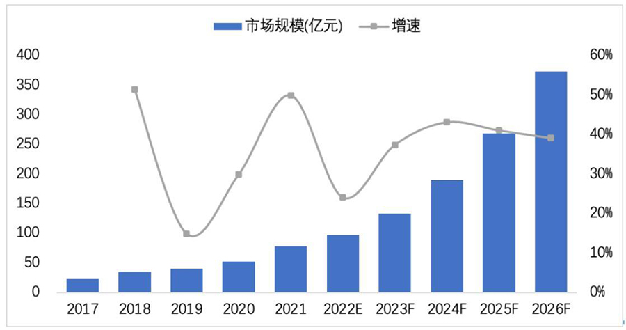 全球AGV市場(chǎng)規(guī)模(單位:億元,%)