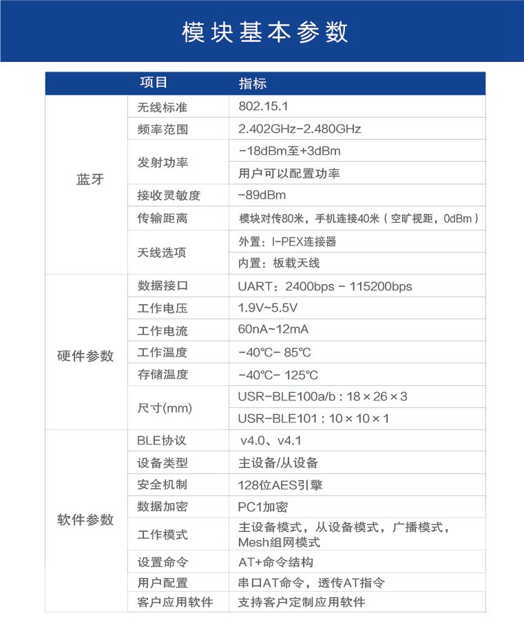 USR-BLE100是一款多功能、工業(yè)級(jí)、低功耗藍(lán)牙模塊。