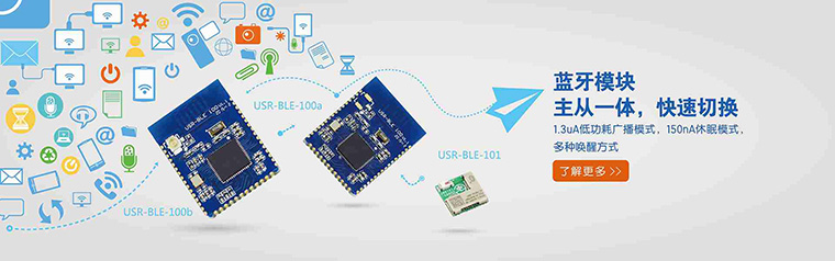USR-BLE100是一款支持藍(lán)牙v4.1 BLE協(xié)議(兼容v4.0)的低功耗ble模塊,通過該模塊可以使傳統(tǒng)的串口設(shè)備或者M(jìn)CU控制的設(shè)備進(jìn)行無線的數(shù)據(jù)傳輸。