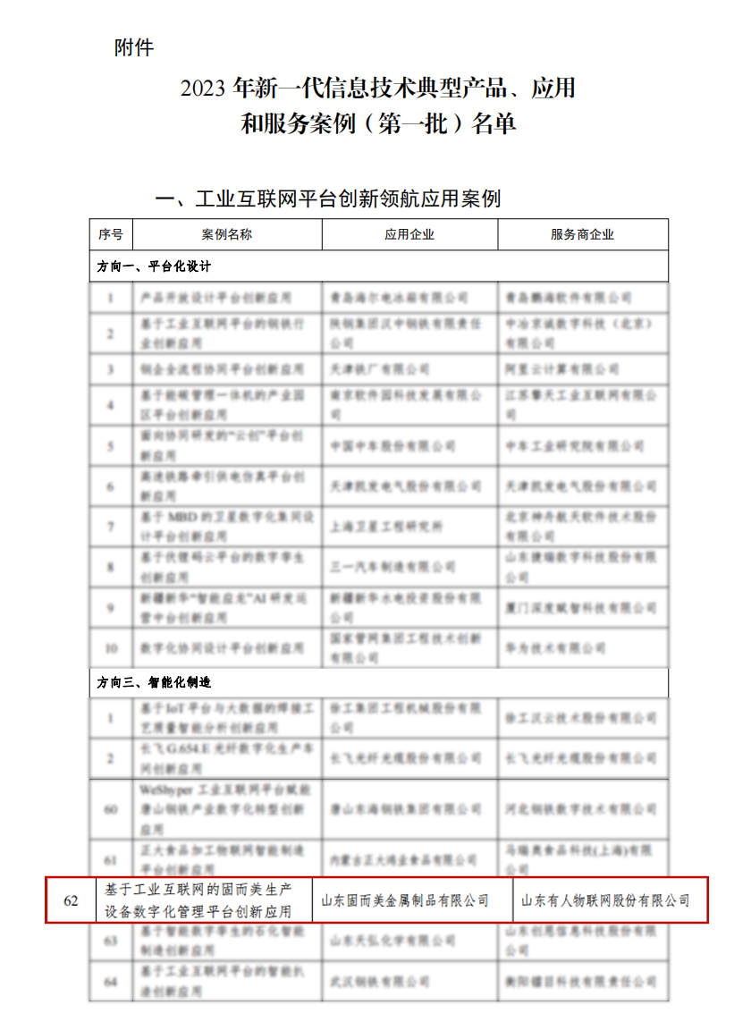 12月27日,工業(yè)和信息化部發(fā)布《關(guān)于2023年新一代信息技術(shù)典型產(chǎn)品、應(yīng)用和服務(wù)案例(第一批)名單的公示》。經(jīng)企業(yè)自主申報(bào)、單位推薦、專家評(píng)審等環(huán)節(jié),本次工業(yè)互聯(lián)網(wǎng)平臺(tái)創(chuàng)新領(lǐng)航應(yīng)用案例全國(guó)共入選211個(gè)案例,有人物聯(lián)網(wǎng)“基于工業(yè)互聯(lián)網(wǎng)的固而美生產(chǎn)設(shè)備數(shù)字化管理平臺(tái)創(chuàng)新應(yīng)用”榮登“工業(yè)互聯(lián)網(wǎng)平臺(tái)創(chuàng)新領(lǐng)航應(yīng)用案例-智能化制造方向”名單。