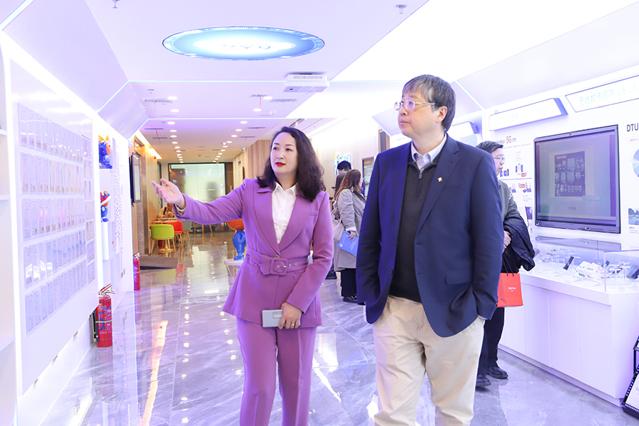 在參觀有人物聯(lián)網(wǎng)時,徐斌教授一行首先觀看了創(chuàng)始人品牌故事視頻,深入了解有人物聯(lián)在董事長古欣的努力奮斗下,從無到有、從小到大,不斷創(chuàng)新、不斷突破,逐漸成長為行業(yè)領(lǐng)軍企業(yè)的過程。隨后,在崔曉紅副總裁的介紹下,聽取了公司發(fā)展歷程、生產(chǎn)經(jīng)營狀況、企業(yè)榮譽(yù)資質(zhì)、重點產(chǎn)品及典型應(yīng)用案例等情況,觀看了公司在物聯(lián)網(wǎng)技術(shù)成果、工業(yè)互聯(lián)網(wǎng)平臺等賦能工業(yè)、樓宇物業(yè)、農(nóng)業(yè)養(yǎng)殖等相關(guān)典型案例的操作與演示,詳細(xì)了解了公司在物聯(lián)網(wǎng)領(lǐng)域、數(shù)字經(jīng)濟(jì)的研發(fā)成果、產(chǎn)品應(yīng)用和市場前景。