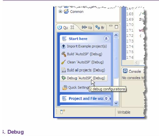 在LPCXpresso開發(fā)界面里,快速啟動(dòng)面板里包含了使用最頻繁的各種操作選項(xiàng)。它位于窗口的左下角。