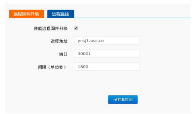 遠程的端口設定為默認值30001,間隔是設備上報信息給遠程服務器的時間,為1800秒,遠程升級功能默認打開。