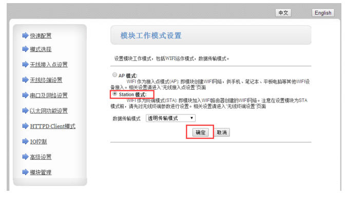 第三,普通設(shè)置。在模塊工作模式設(shè)置中,選擇station模式。