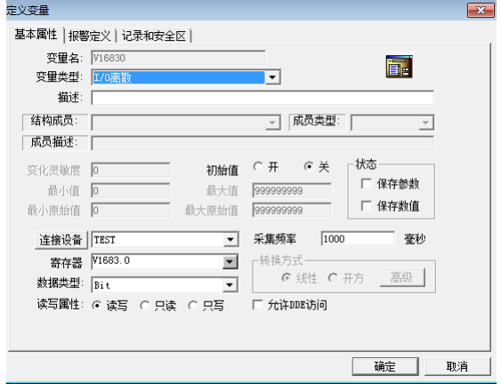 1.添加V16830,變量類型為離散,數(shù)據(jù)類型為Bit。